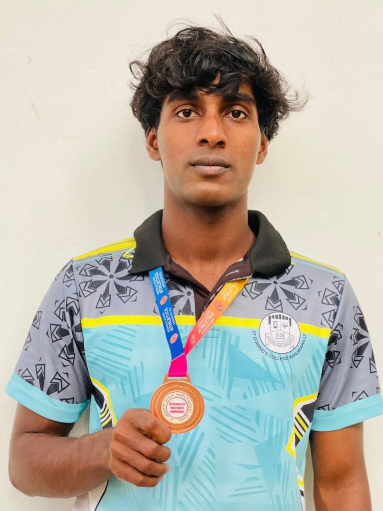 Rakesh R- III BA History representing Kottayam District Men team won the Bronze